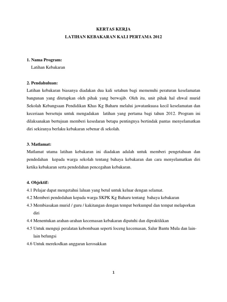 Doc Kertas Kerja Program Kebakaran Sekolah Zamer Rahman Academia Edu